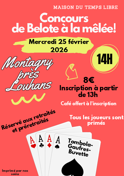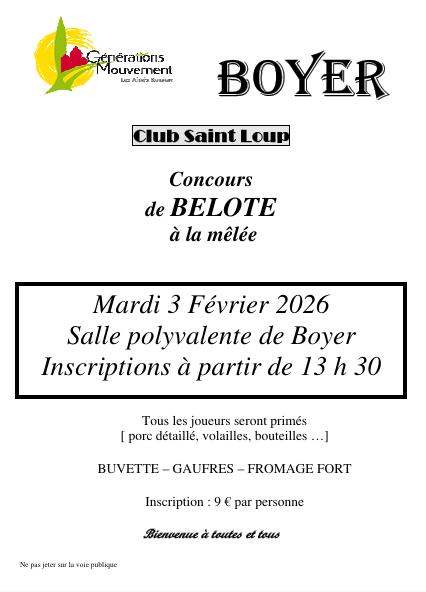 Marche cantonale du secteur le mardi 27 janvier à Cormatin, RV à 13h45 à la salle St Roch, deux circuits (6km et 10 km) pour les personnes qui ne veulent pas marcher elles peuvent jouer (tarot, scrabble, triomino, rumicub… ) l’après-midi à la salle St Roch.